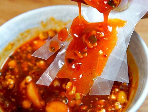 Bánh tráng trộn cần nước chấm sệt hơn, ít nước hơn để không bị nhão. Bạn có thể giảm lượng nước lọc xuống còn 50ml và tăng thêm tương ớt để có độ đặc vừa phải. Loại nước chấm này sẽ bám tốt vào từng miếng bánh tráng.