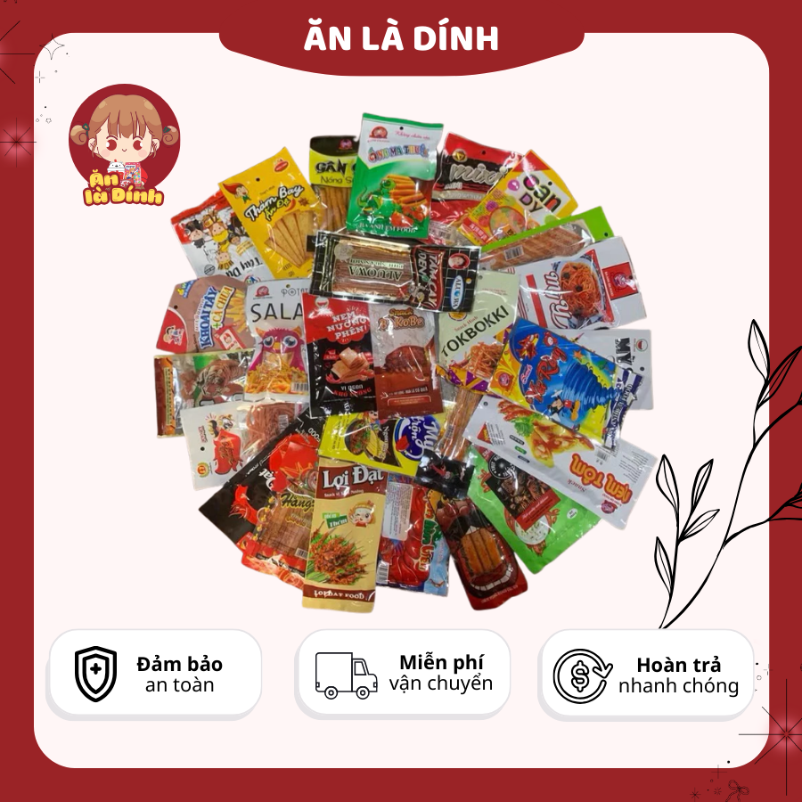– 30 vị snack độc đáo: Mở ra hành trình vị giác với những món ăn vặt cổng trường cay cay, mặn mặn, ngọt ngọt, mỗi gói là một trải nghiệm mới!